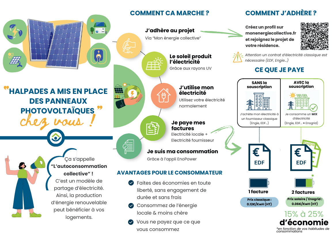 Flyer pédagogique réalisé par Halpades à destination des locataires pour expliquer l'autoconsommation collective